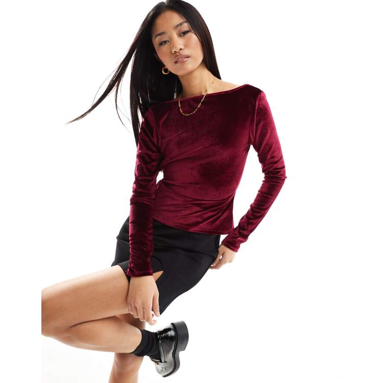 Burgundy velvet long sale sleeve top