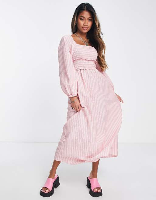 Pink striped sale midi dress